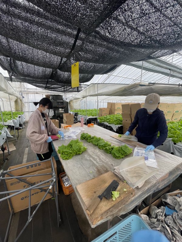 →収穫時は箱にサンチュを入れていきますが、葉っぱなので全然重たくありません。