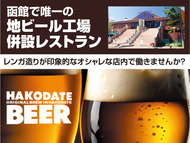 函館の地ビールでは元祖といえる「はこだてビール」。醸造タンクを間近に眺めながら楽しむことが出来るレストランです。店舗社員だけでは無く、本部の社員もフォローしながらグループ全体でお店を盛り上げています!